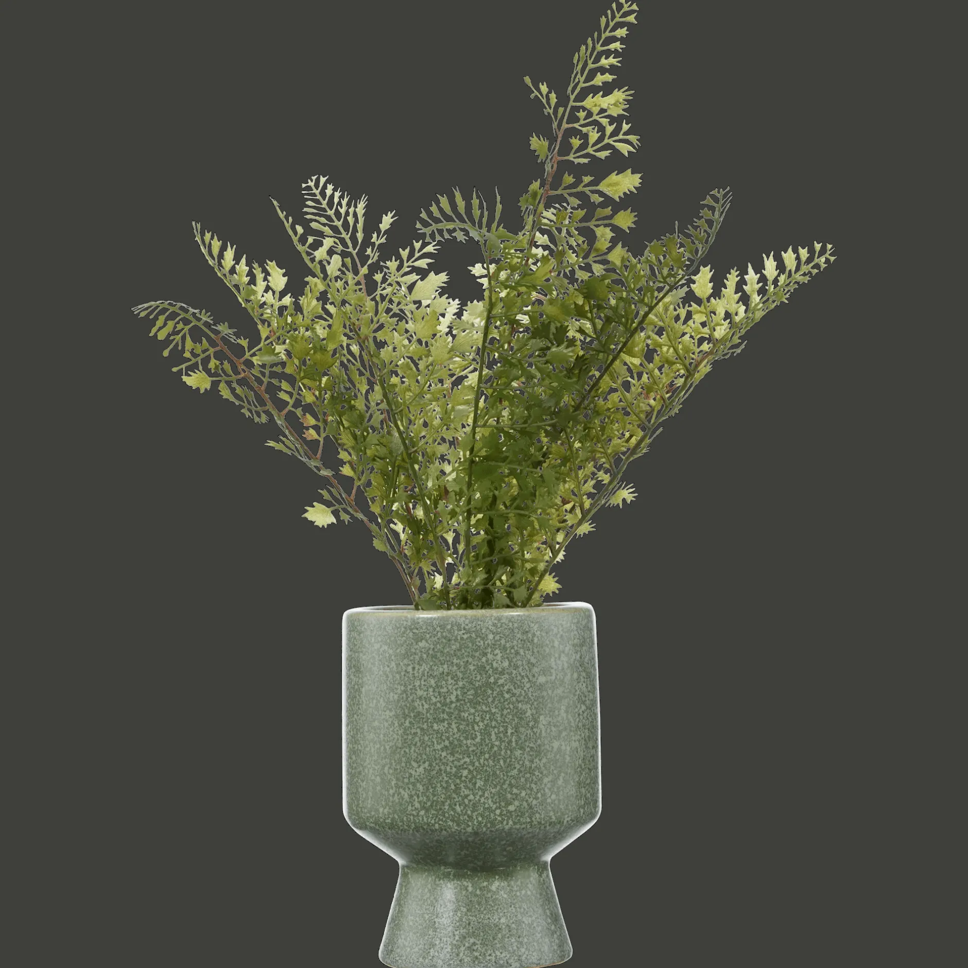 Delicate fronds, sculptural base. This artificial fern in a soft green ceramic pot is the kind of detail that elevates a shelf, a desk, or any little corner. No water needed.