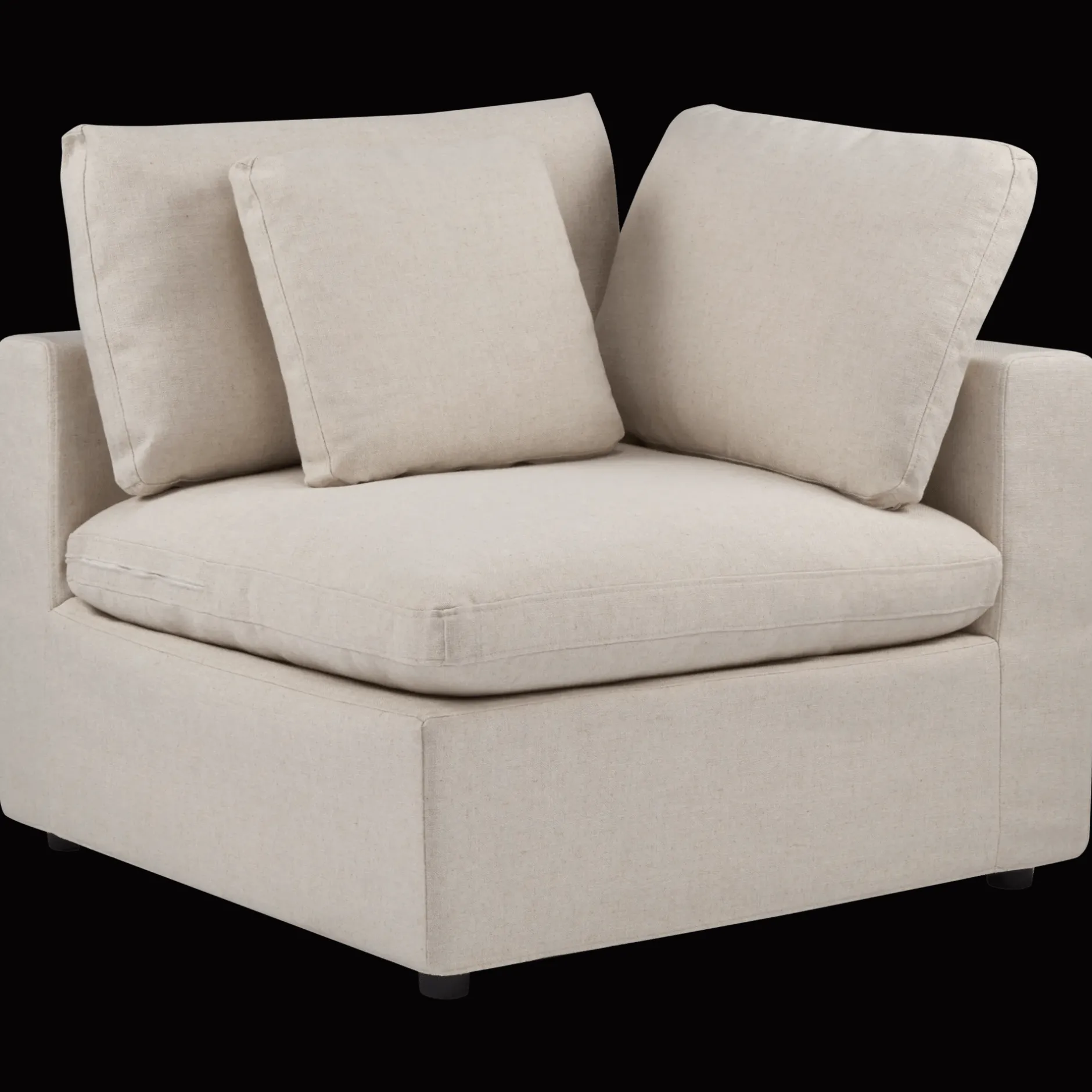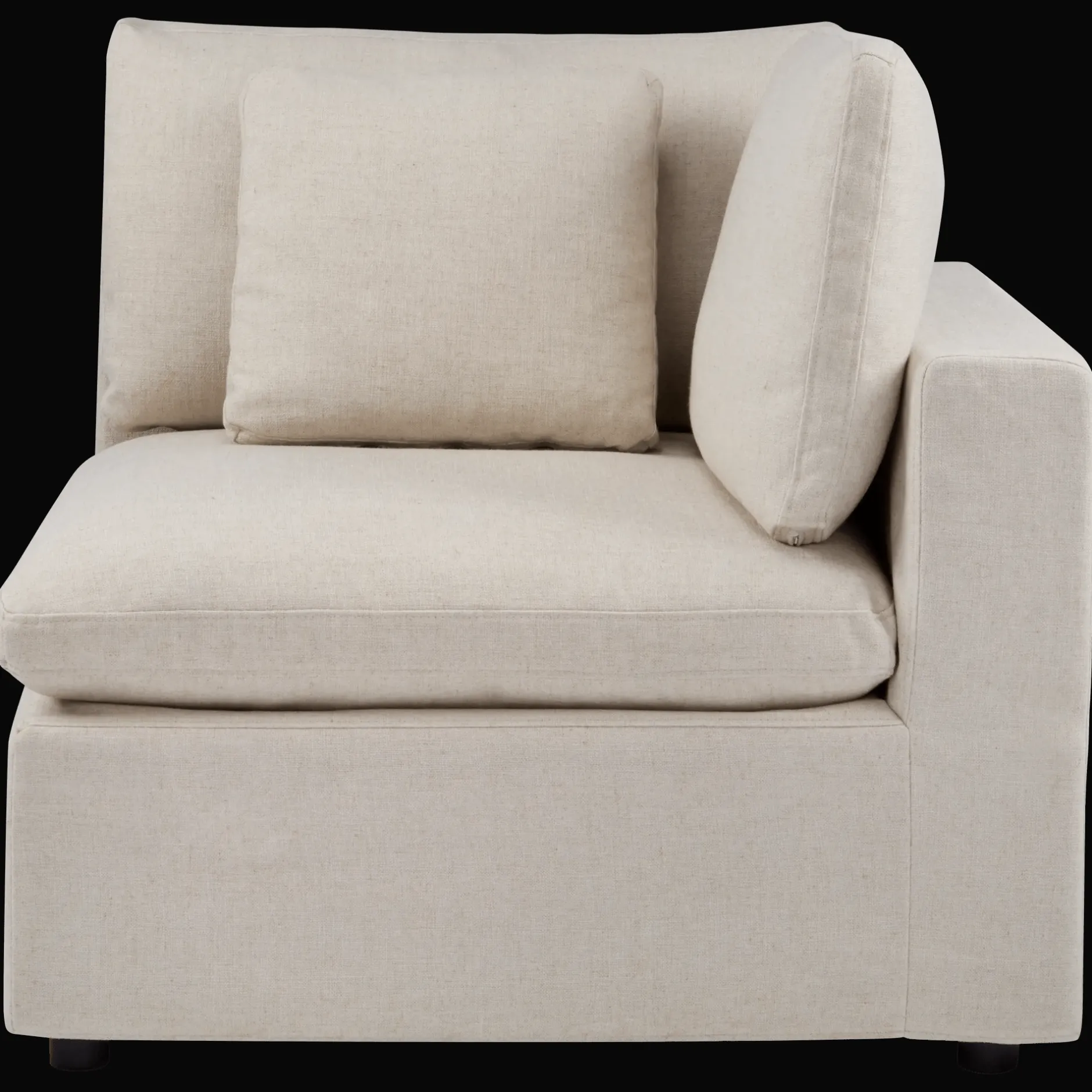 Start here. This plush right-arm seat sets the tone-soft, sculptural, endlessly modular. Build your perfect sofa, one cozy piece at a time.