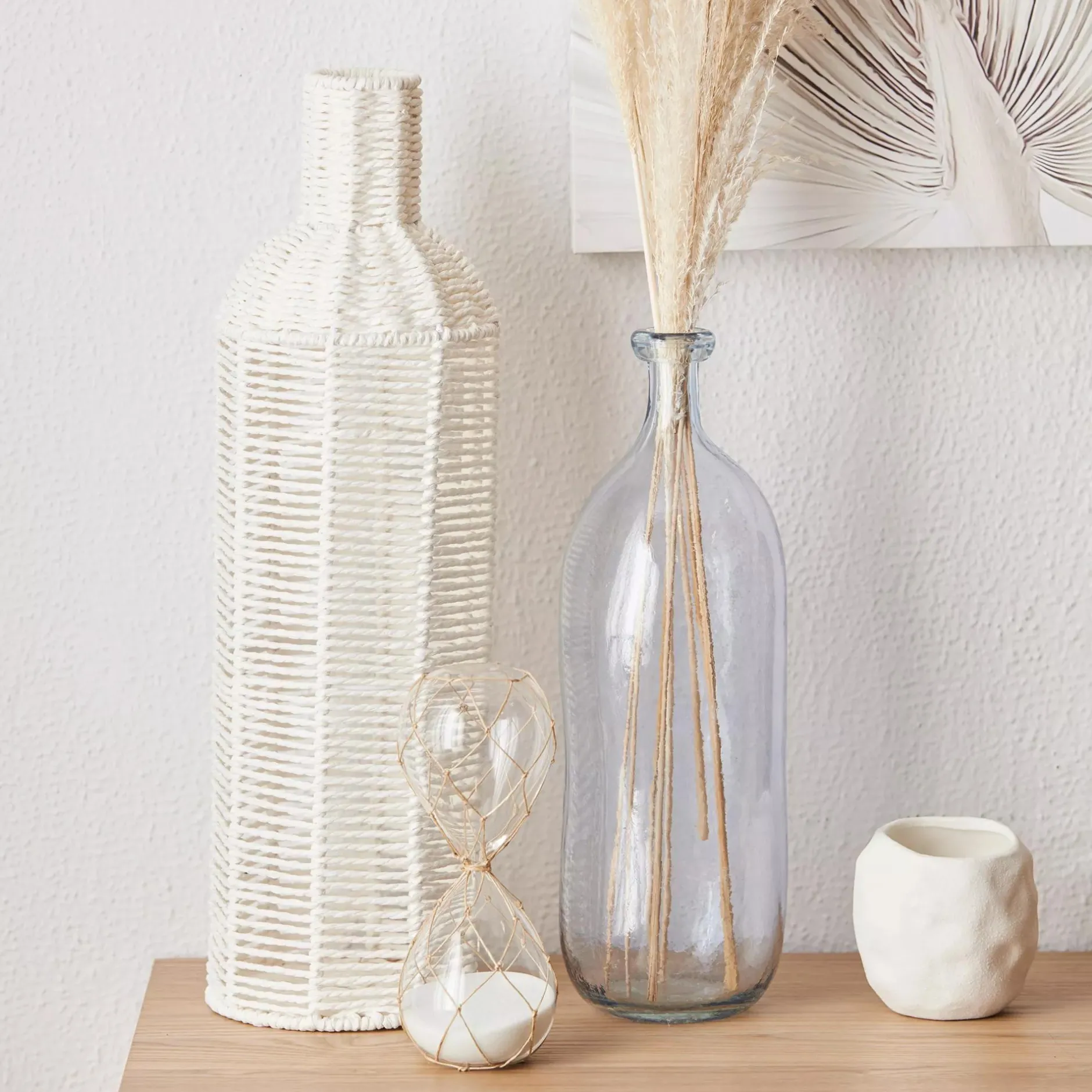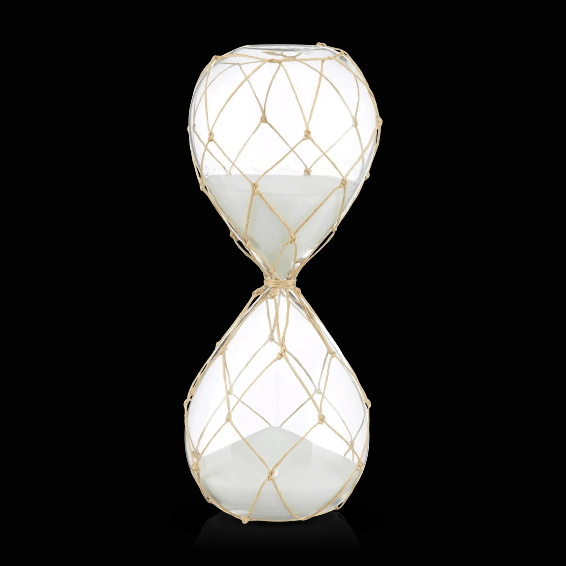 Set your time to 30 minutes! Looking for a sophisticated way to get things done in a timely manner? Look no further this delicate hourglass is filled with white sand and wrapped around with white rope that looks stunning in a coastal setting.