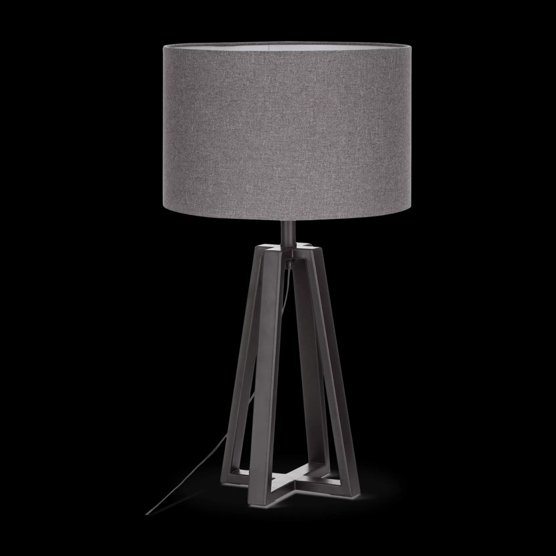 Fall in love with the airy openness of this table lamp. Featuring a tripod feel that’s elevated by the clean geometric lines of its black metal base, this light is set to deliver modern style to your space. With its dark grey linen drum shade, it has a masculine edge that would also be welcome in a more feminine decor. Display it on an end table next to a sofa or try a pair on a console table for striking symmetry.