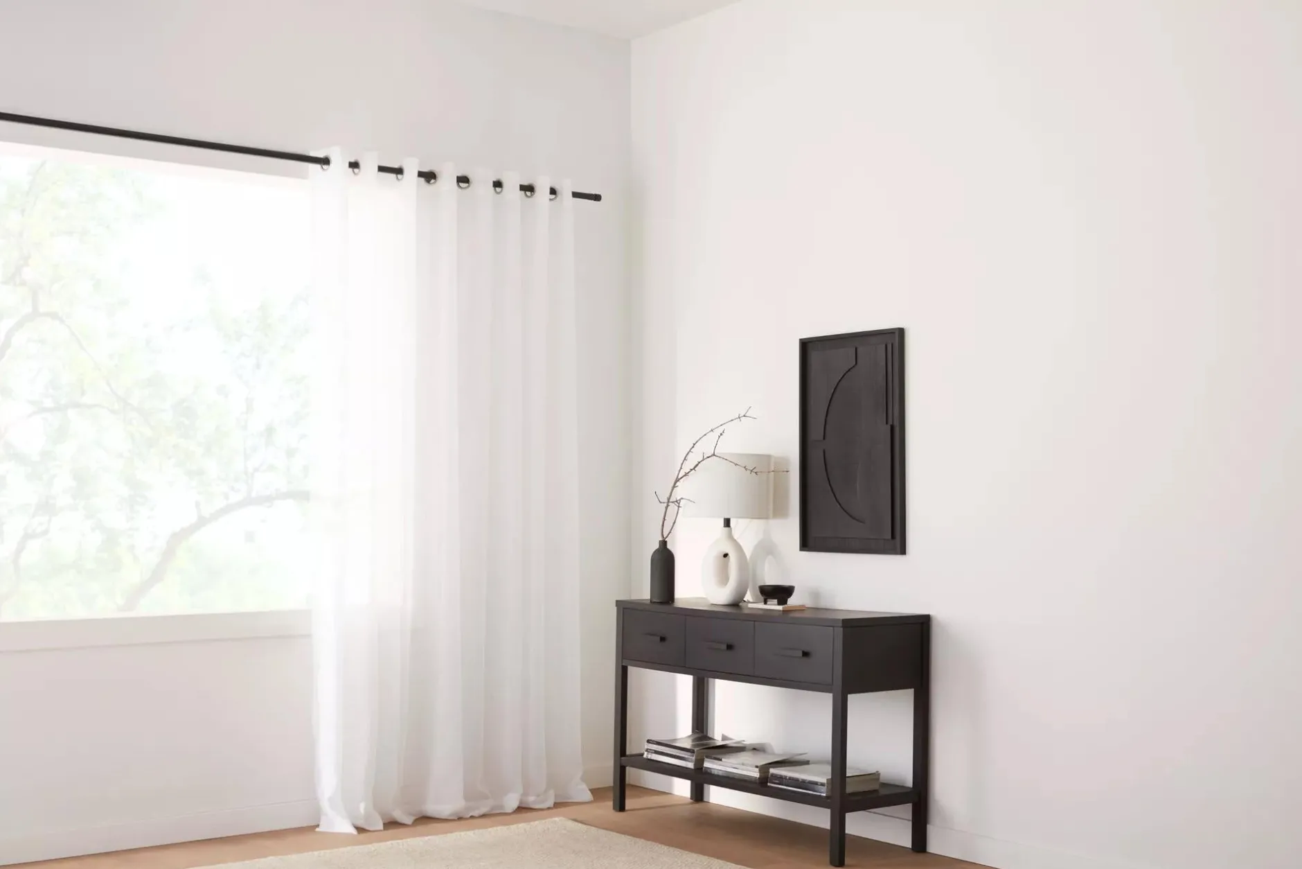 Add a rich and elegant look to a room with this sheer curtain. This sheer curtain is durable and easy to wash. Available in a variety of colours. Each panel is sold separately.