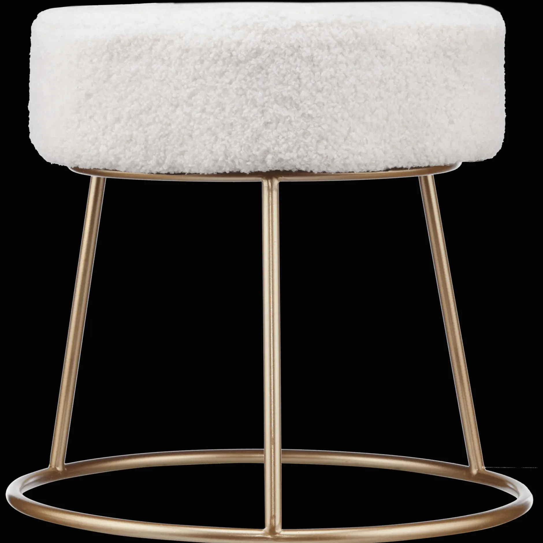 A floral-inspired bouclé seat sits atop a slim golden base. This little stool brings softness, shape, and a pop of glam, perfect for layering into any space.