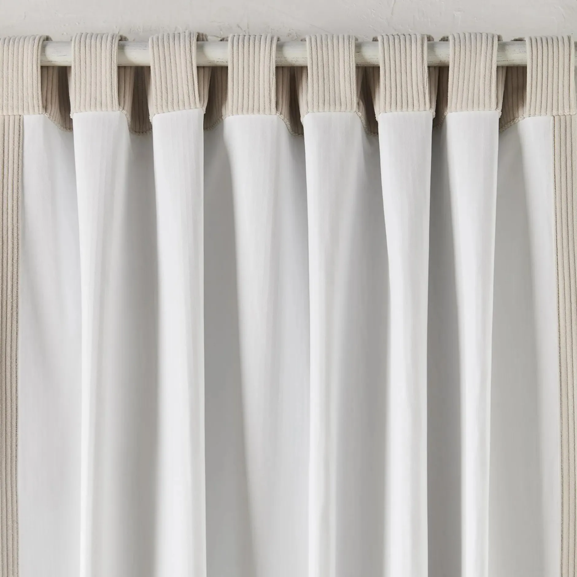 This beige light-blocking curtain with invisible tabs combines style and functionality to enhance any room. The soft beige fabric complements a variety of decor styles, while the light-blocking feature ensures optimal control of light and privacy. The design with invisible tabs offers a modern, sleek look, making installation easy and creating a clean, tailored appearance. 1 panel per pack each pack sold separately.