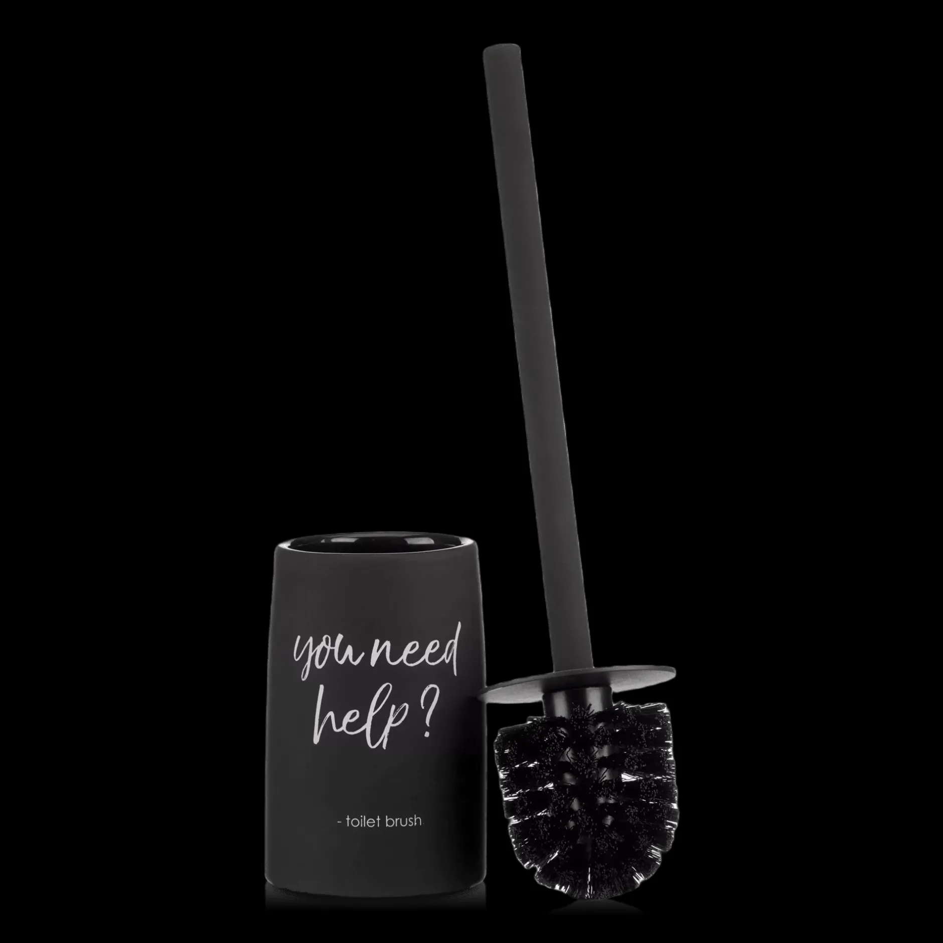Refresh your bathroom essentials starting with this playful toilet brush featuring French typography besoin d’aide? (need help?).