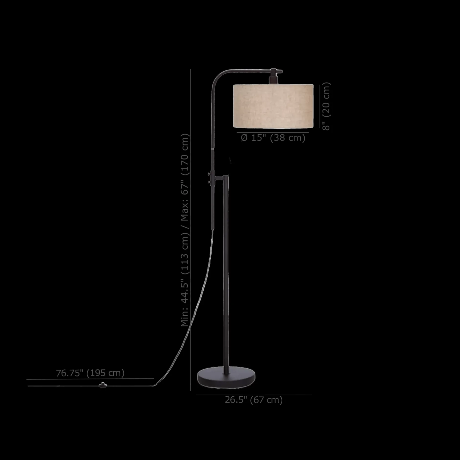 Lamp shade height : 8 in (20 cm)