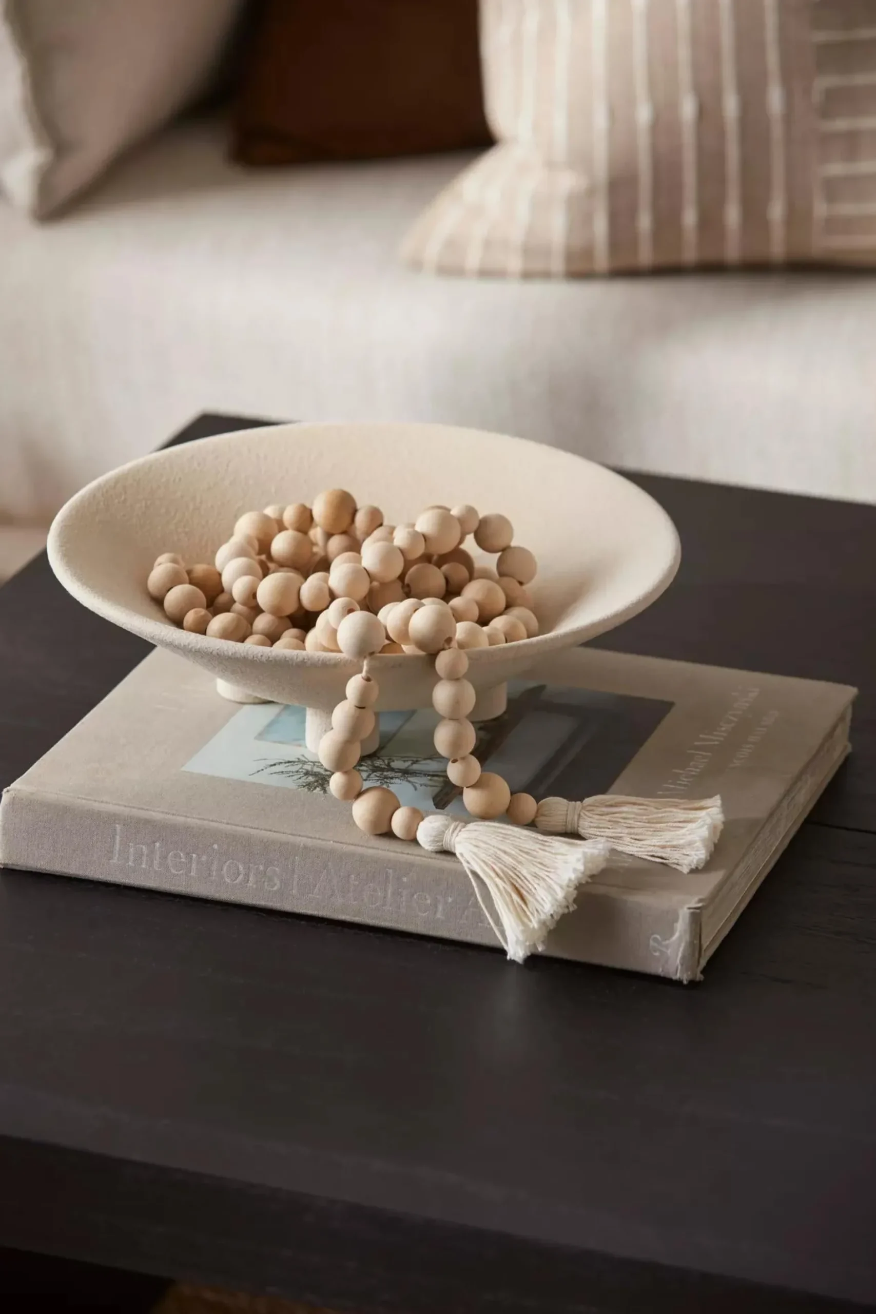 Wooden beads in a Beige wash look great on a coffee table display! Warning: This item is for decor only. This item is not a toy. This item contains small parts. Keep away from children and pets.