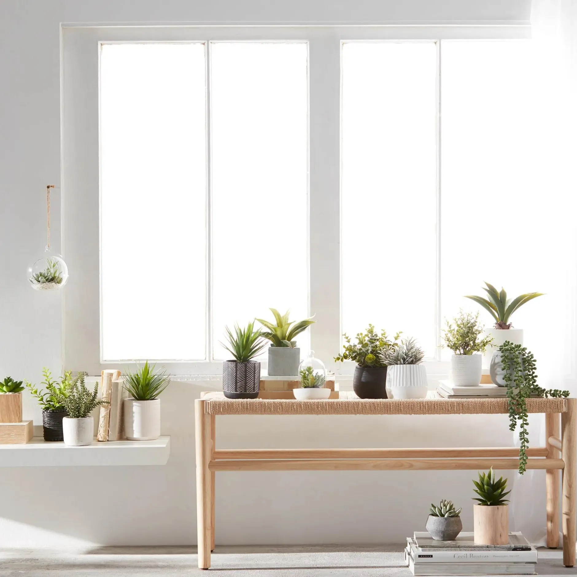 Create a living focal point in any space with this hanging terrarium. Made of clear glass with an organic-inspired form, this rope-trimmed planter has an airy and ethereal presence. Filled with pebbles and succulents, it is set to create a hip, natural vibe in your home. Hang it from the ceiling and let its combination of natural materials deliver a trendy, modern impact to your decor.