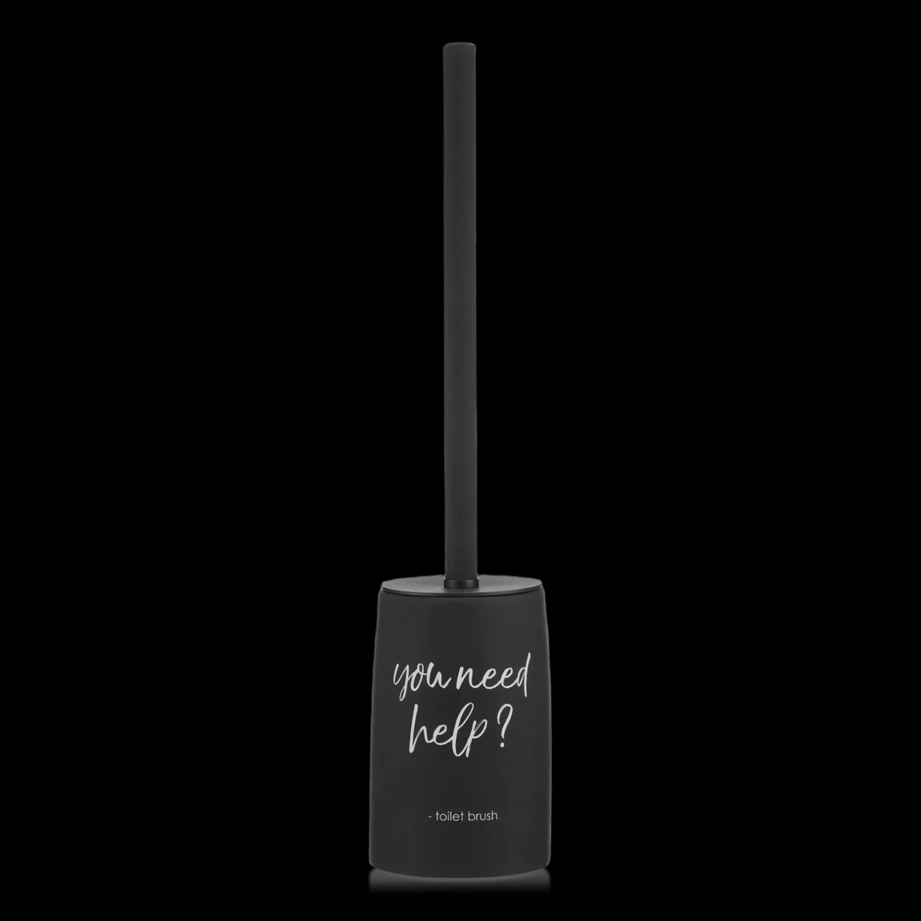 Refresh your bathroom essentials starting with this playful toilet brush featuring French typography besoin d’aide? (need help?).