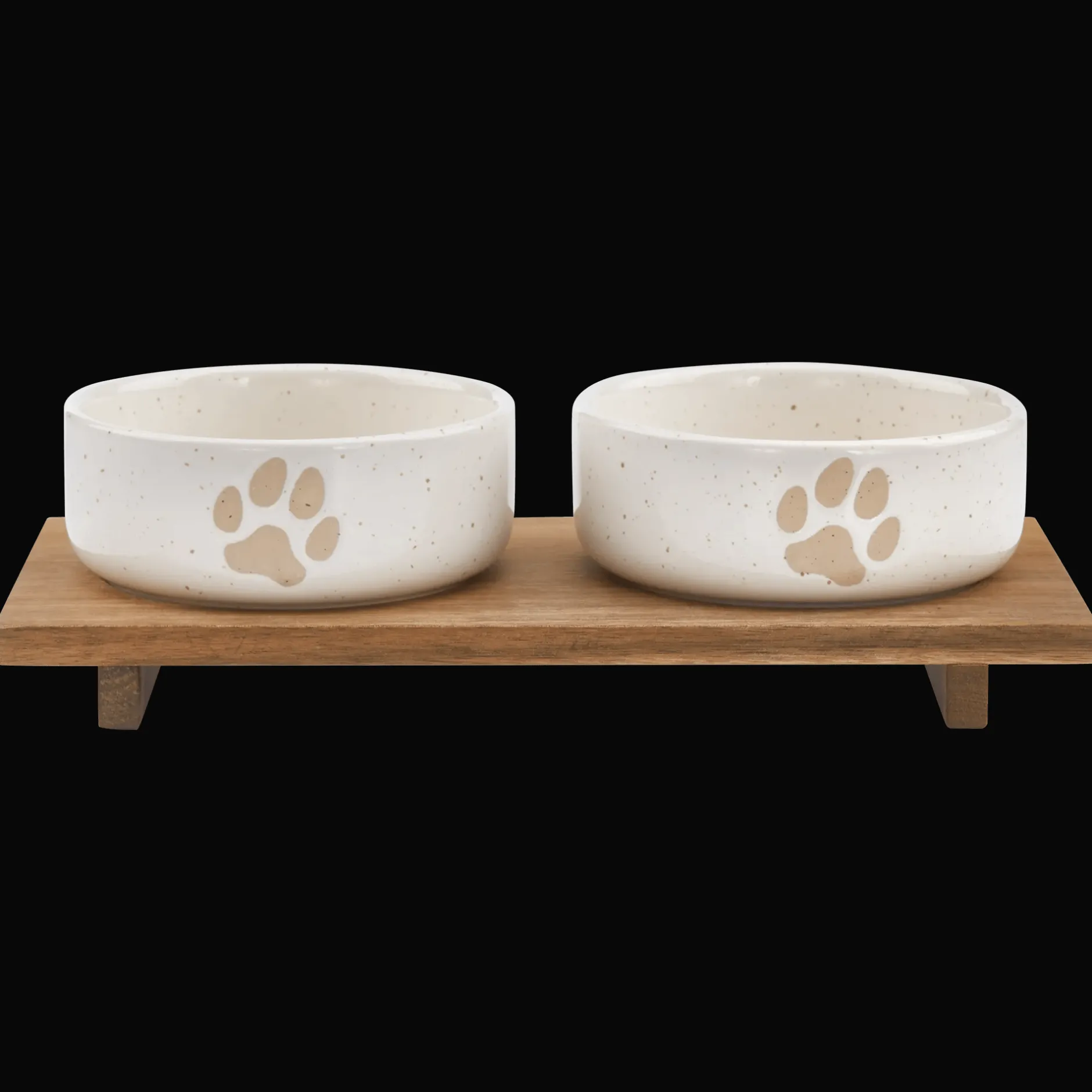 This set includes two ceramic bowls decorated with paw print designs, perfect for feeding your pets in style. Durable and easy to clean, they’re suitable for both water and meals